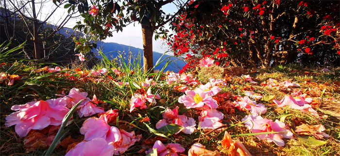 云南省大理白族自治州漾濞彝族自治县官房坪的杜鹃花,每年三、四月份开放,花开时节,红色占据了整个山坡,映红了苍山西坡的沟沟壑壑。