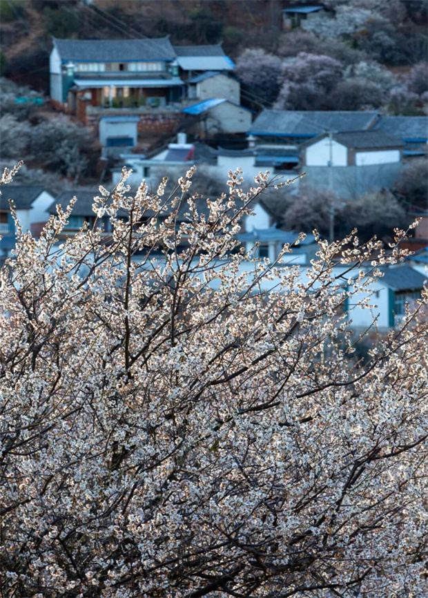 此刻的洱源松鹤村万亩梅花悄然绽放如雪飘落于山野或深或浅、如梦似幻;朵朵梅花挂满枝头一阵风吹来散发出阵阵花