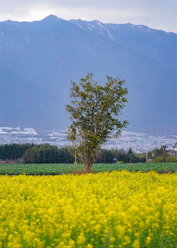 苍山脚下、洱海之畔油菜花海早已悄然绽放放眼望去金黄一片、连绵起伏让人心旷神怡,徜徉在花海中伴着和煦的春风