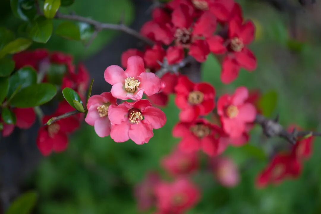 木瓜花:茈碧湖畔的绯红烈焰