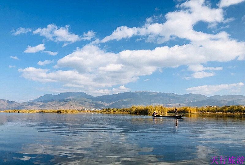 乘船于湖上,欣赏周围清新风景,芦苇轻轻飘扬,不时有白鹭飞来飞去,与江南水乡有异曲同工之妙。