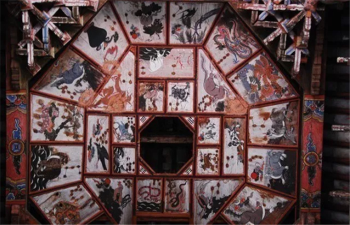 诺邓村最大的民宅“四合五天井”,大院中间一个大天井,四边有四个小天井,上房、耳房、面房都设堂屋,四面楼房相通可巡回来往,即“走马转角楼”结构。