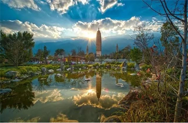 崇圣寺三塔天地之间美丽的倒影好像处身在仙境之中